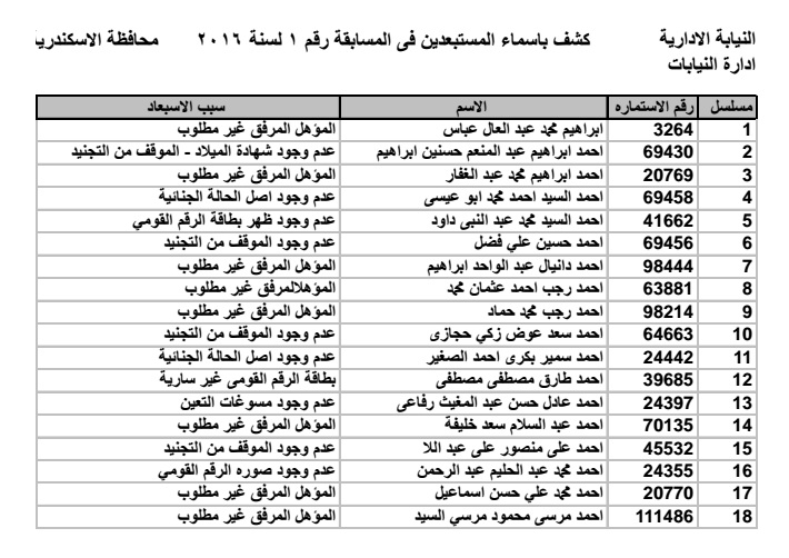 وظائف مسابقة النيابة الادارية اسماء المقبولين والمستبعدين بجميع المحافظات وتقديم التظلمات ليوم 5 اكتوبر 2016