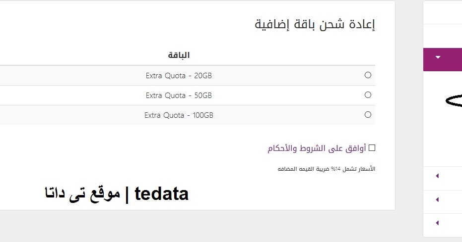 طريقة شراء باقة اضافية تي اي داتا وتفعيلها ودفعها اونلاين