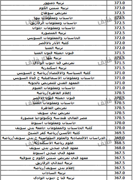 الحدود الدنيا للقبول بالكليات والمعاهد للثانويه العامه ادبى 2020 من تنسيق المرحلة الثالثه