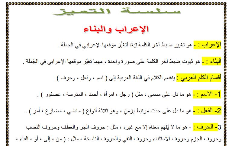 الاعراب والبناء نحو الصف الثاني الإعدادي 2ع ت1