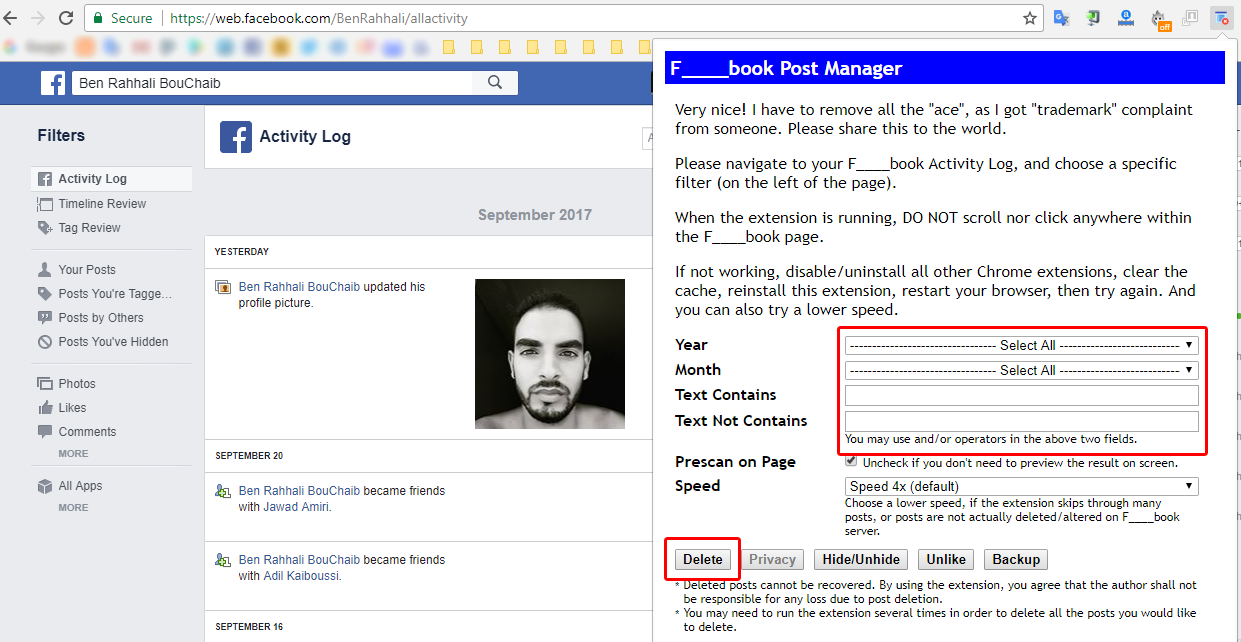 حذف منشورات الفيس بوك وبنقرة زر واحدة How To Delete All Posts On A Facebook فترة للمعلوميات