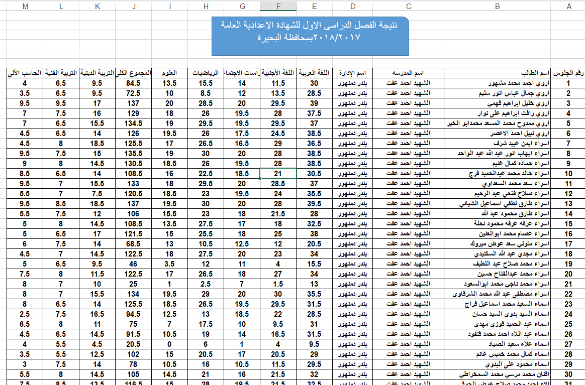 نتيجة إعدادية محافظة البحيرة كاملة في ملف اكسل برقم الجلوس