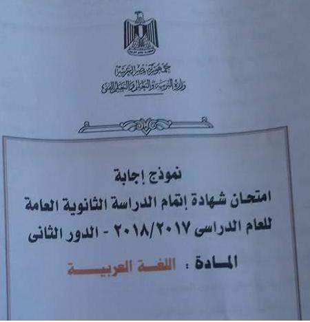 امتحان اللغة العربية للثانوية العامة الدور الثاني 2018 بنموذج الإجابة الرسمي