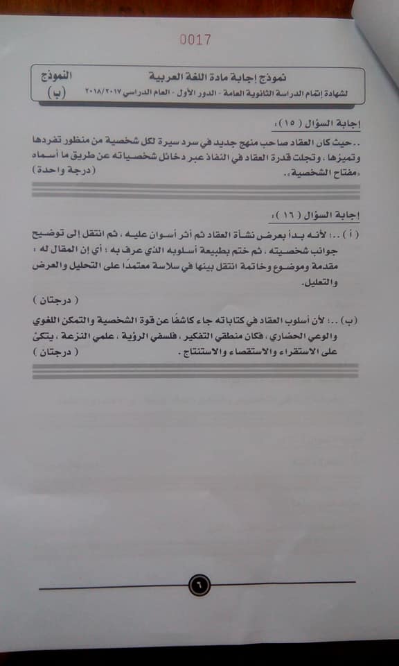 اجابة امتحان العربي للثانوية العامة 2018 صفحة بالغش اتجمعنا تنشر الأجابة لامتحان اللغة العربية لبوكليت الثانوية العامة
